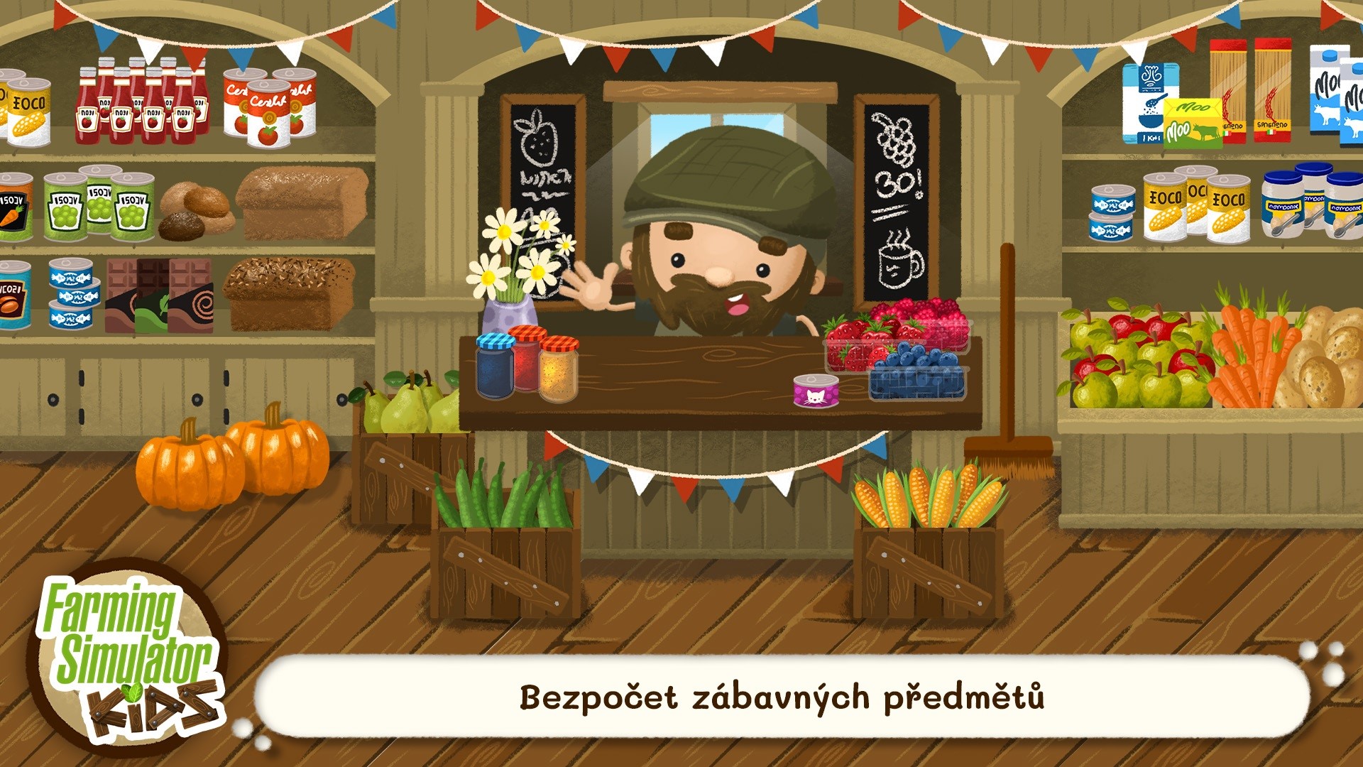 Vďaka roztomilej grafike pozýva Farming Simulator Kids mladých hráčov, aby prežili príjemný život na farme. Deti objavujú lokácie na statku, kde budú pestovať a žať zdravé plodiny alebo sa starať o roztomilé hospodárske zvieratá ako kravy, sliepky či husi.