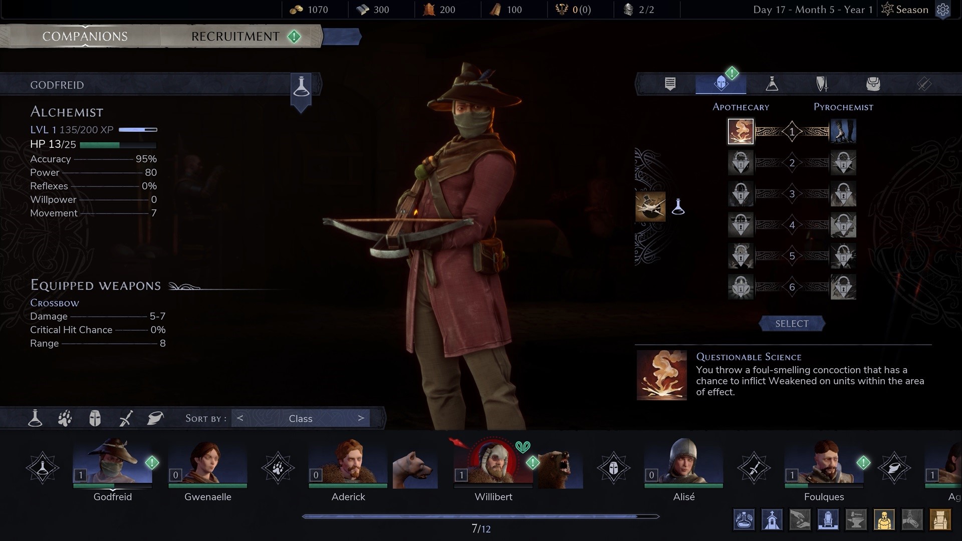6 hrateľných tried: Križiak, alchymista, pán šeliem, sťahovač kože, duelista a strelec.