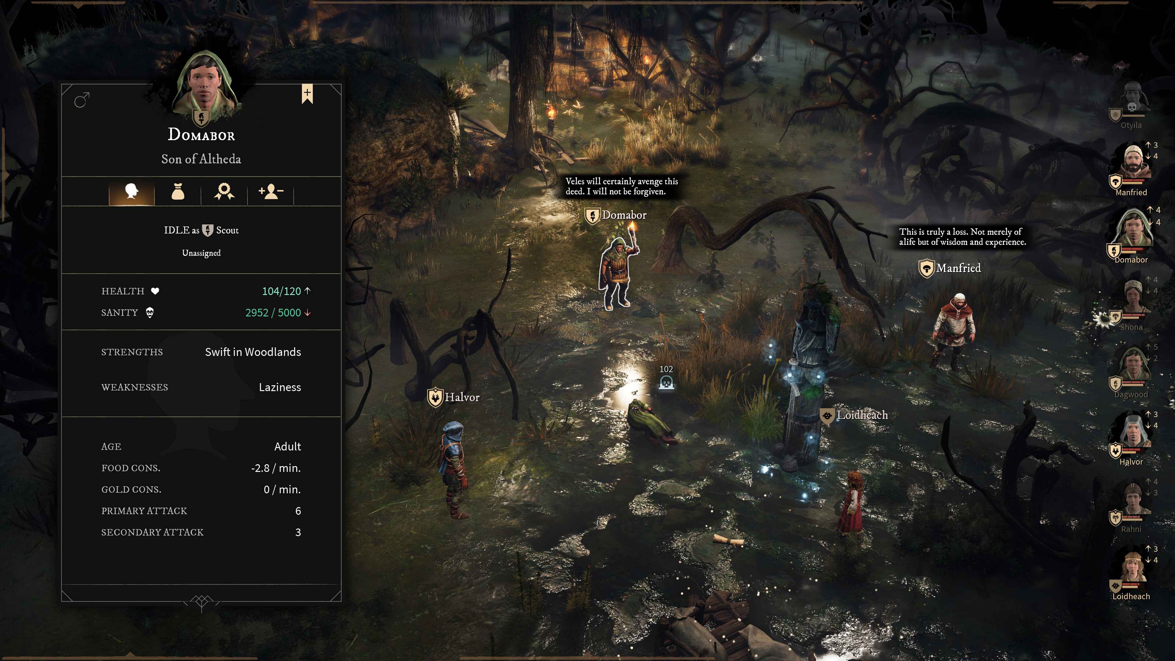 A HEALTHY POPULACE IS THE KEY TO SURVIVAL IN GORD. Every aspect of your settlers’ lives - from illness, to hunger, to the death of their kin - can impact each subject’s Sanity levels. Keep a close eye on them, as once a subjects sanity reaches a critical point, they will suffer a breakdown or even flee your rule.
