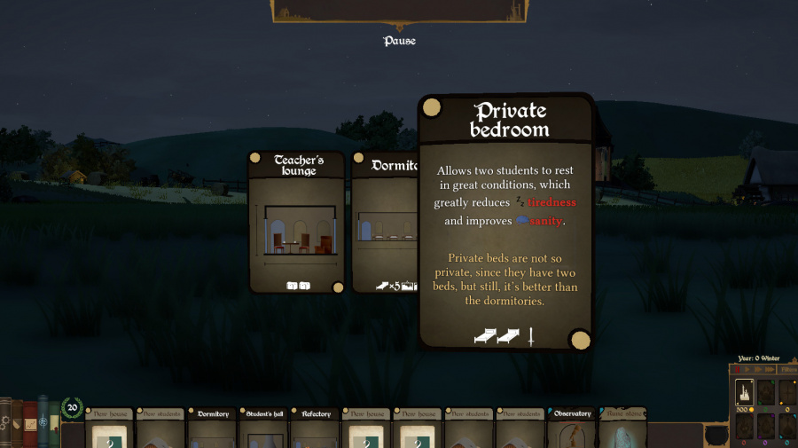 - Správa študentov a personálu: Starajte sa o blaho svojich študentov, najímajte kvalitných učiteľov a udržiavajte disciplínu.