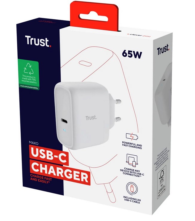 - TRUST MAXO 65W 2P USB-C CHARGER WHT