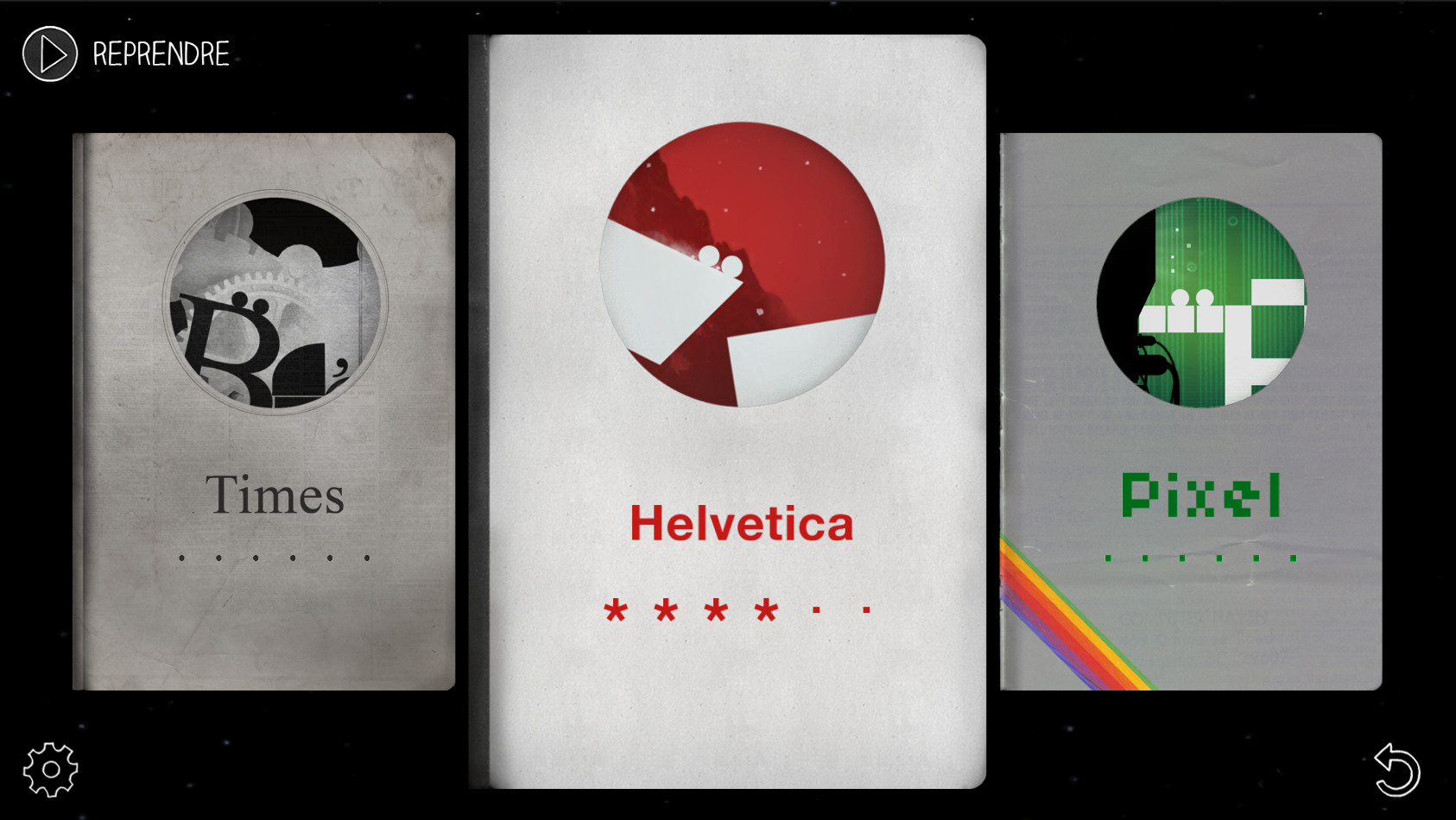 Od skalných malieb praveku až po umenie Pixel z roku 2000, vyriešte všetky hádanky jazdou na najpopulárnejších fontoch a znakoch (Garamond, Helvetica, Times New Roman, Pixel, Comic Sans...) vo veľmi podmanivom hudobnom a vizuálnom prostredí.