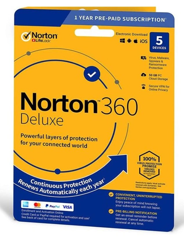 - Norton 360 Deluxe + 50 GB Cloud storage - 5 lic. 12 mes.