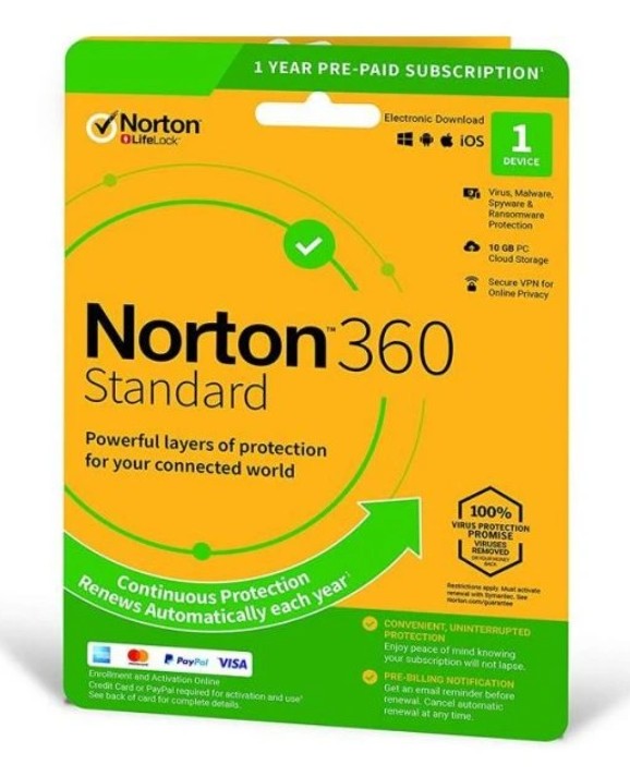 - Norton 360 Standard + 10 GB Cloud storage - 1 lic. 12 mes.